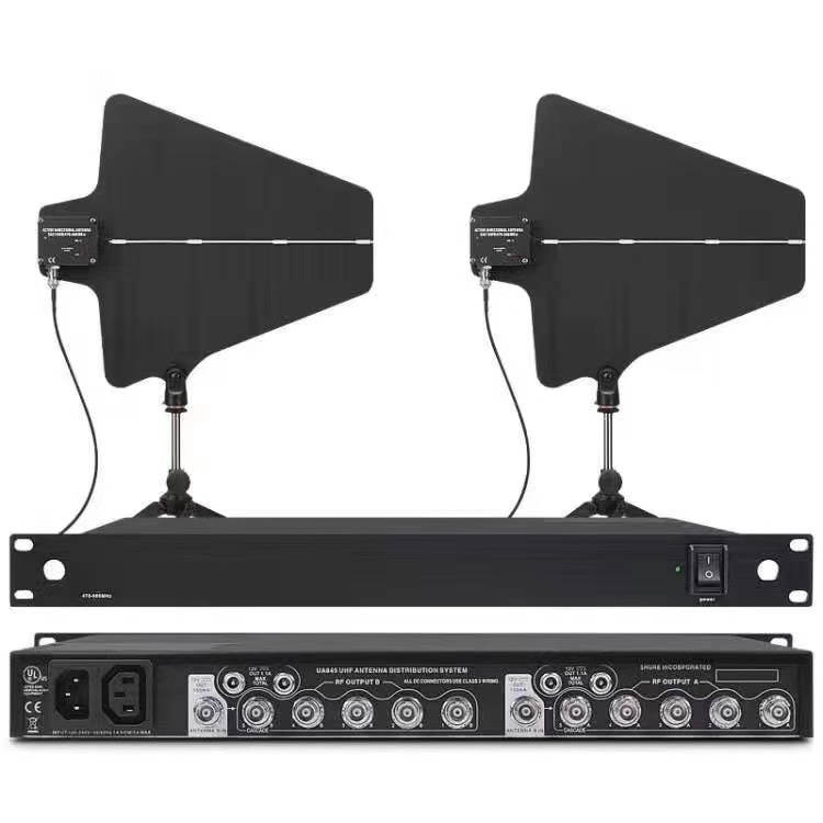 U-845是一臺(tái)UHF頻段,寬頻帶的分集式天線分配器,可把一對(duì)天線接收信號(hào)作整體增益分配到多個(gè)通道的無線接收系統(tǒng)中。一臺(tái)天線分配器可提供5臺(tái)接收機(jī)的分配連接。